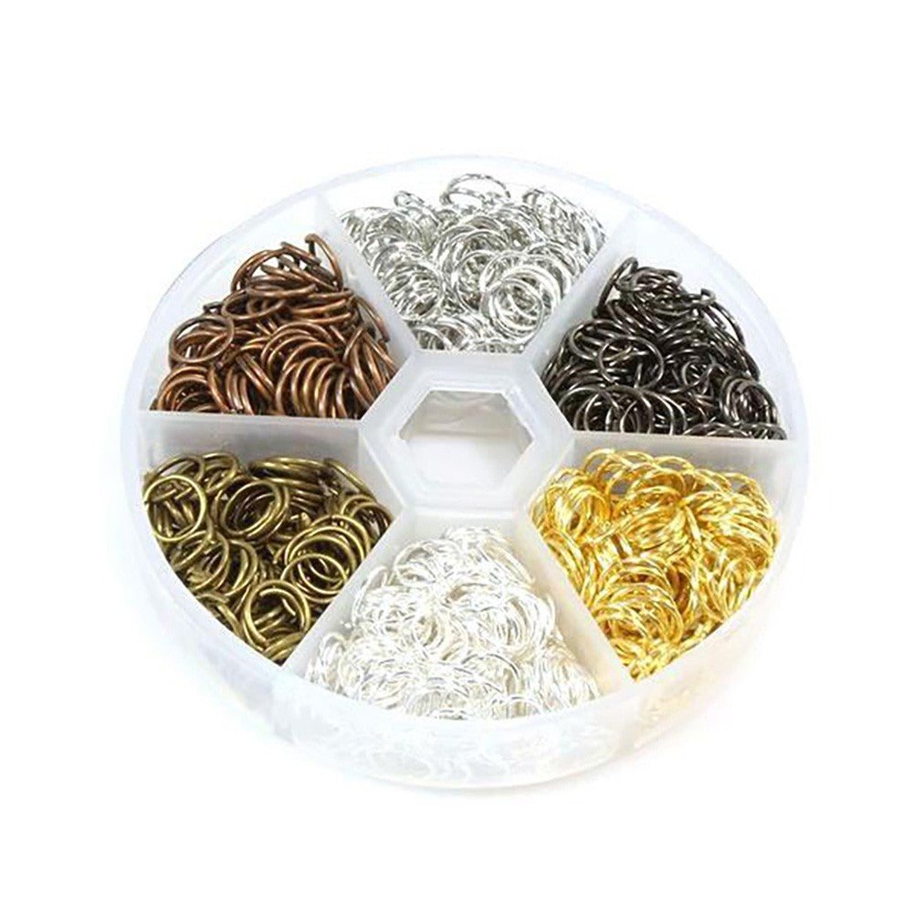 La boite à 6 compartiments contient des anneaux de jonction en laiton répartis selon leur couleur : doré, argenté, anthracite, bronze, cuivre et gris. Chaque boite comprend environ 900 anneaux de la même dimension: 8mm. L 'épaisseur des anneaux est de 0.8 mm.