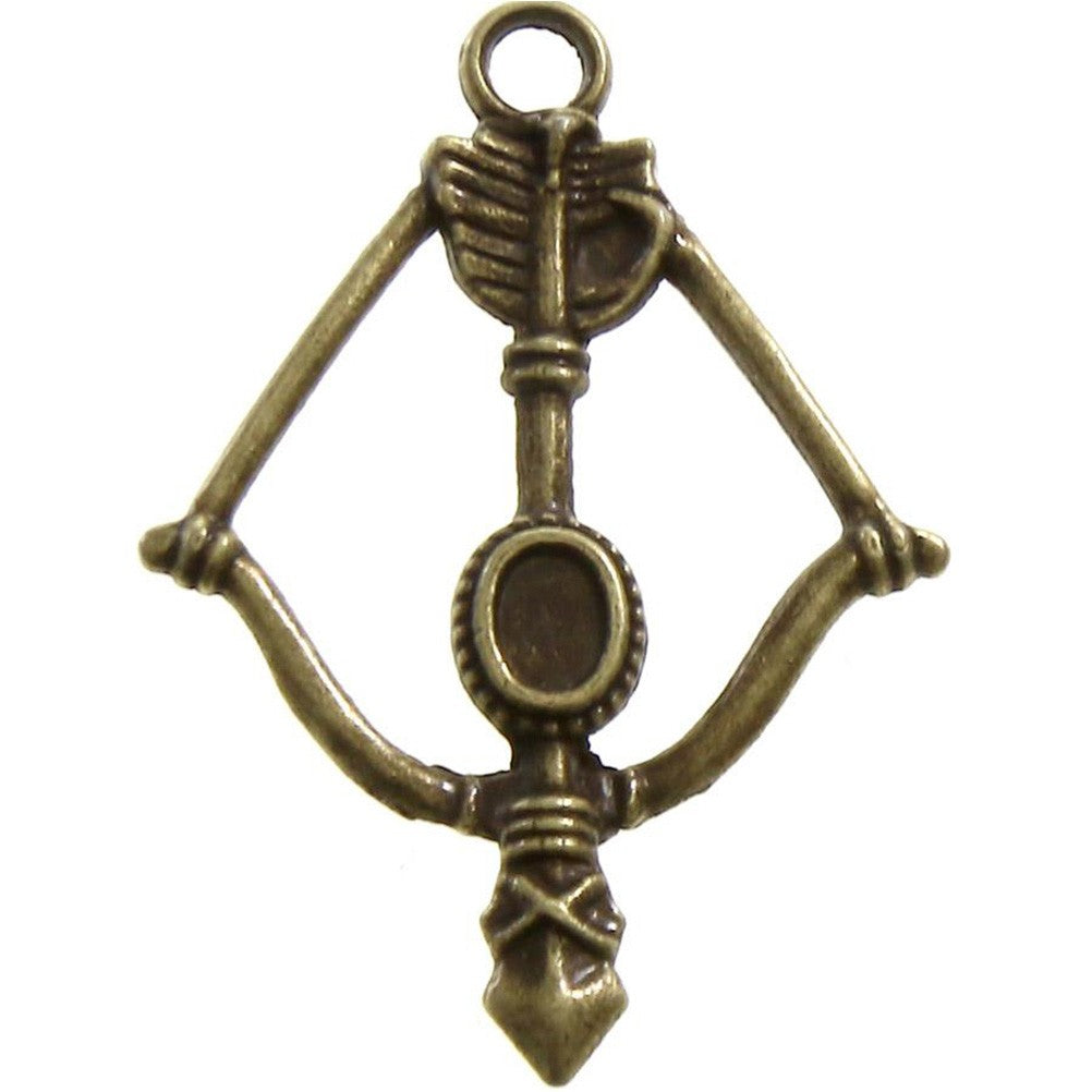 Une breloque pendentif en forme d’arc pour suspendre à vos colliers. De nombreux détails sont dessinés un peu partout sur l’arc et la flèche, ce qui rend cet apprêt riche visuellement et agréable à l’œil.