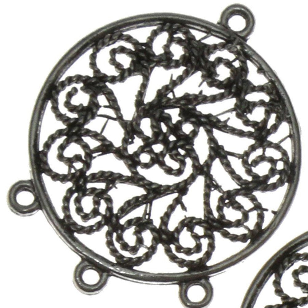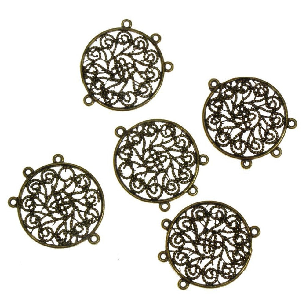 Connecteur chandelier de type ancien, qui vous est livré par lots de 5 pièces. Une grande diversité de création est offerte par le design de l'objet et les trois trous présents sur une partie du cercle. Créez de jolies boucles d'oreilles mais aussi des bracelets, sautoirs, bijoux de main… Longueur 37 millimètres, largeur 30 mm, profitez de ces connecteurs aux courbes très travaillées pour embellir vos bijoux ! Il ne vous reste qu’à décider de la couleur à adopter (gris ou doré) pour utiliser au mieux ce connecteur chandelier !