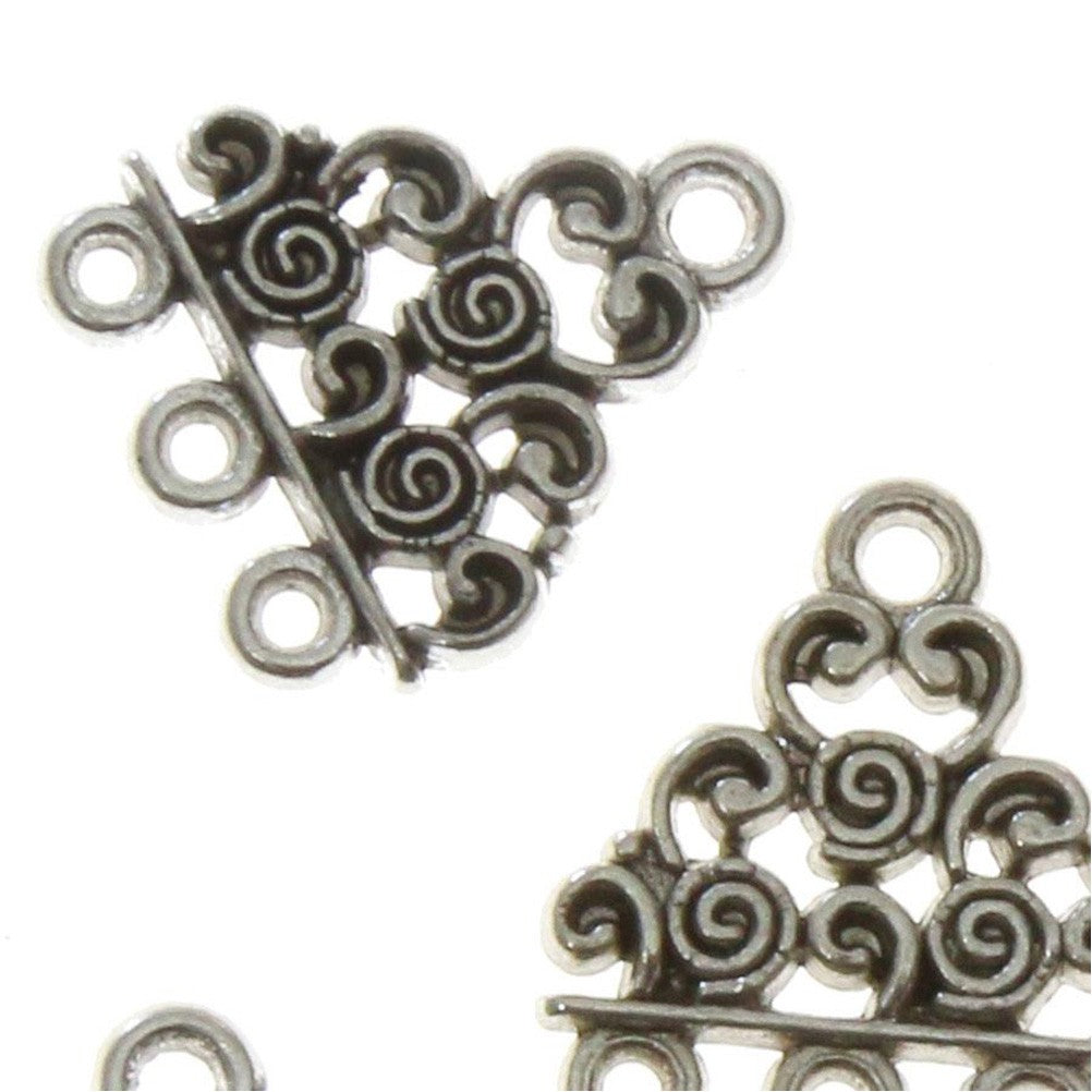 Un connecteur bijoux qui allie une forme en triangle et de multiples arabesques pour compléter vos créations de manière décorative. L'aspect vieilli du métal confère une valeur artisanale à l'ensemble. Le diamètre des trous est de 1,5 millimètre, et le connecteur présente une longueur de 18 mm. Ce lot de 5 accessoires bijoux saura répondre à vos envies créatrices. Créateurs amateurs ou professionnels, profitez des cinq couleurs au choix et du style oriental résolument féminin de ce connecteur bijoux !