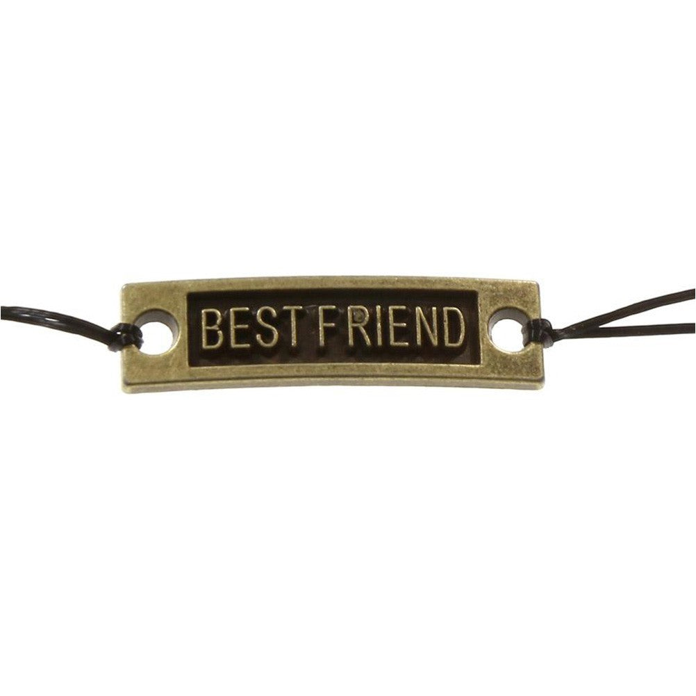 Connecteur qui se présente sous la forme d’une simple plaque avec une gravure "Best Friend" au centre et deux extrémités trouées pour faire passer le fil bijoux. Disponible en couleur bronze ou argenté, ce modèle mesure 3,5 centimètres de longueur et 9 millimètres de largeur. Créez de jolis bracelets pour vos ami(e)s ! Un lot de 5 connecteurs en métal qui se marie parfaitement avec des apprêts plus décoratifs.