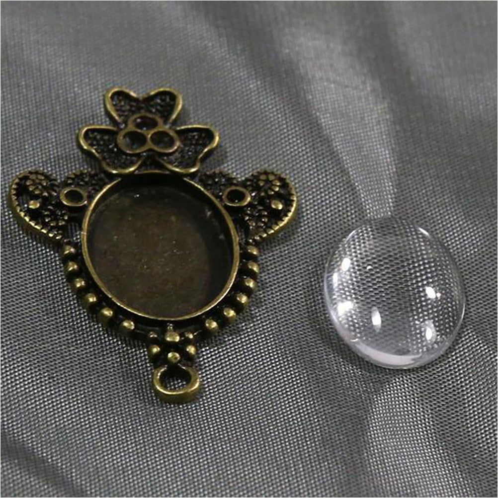 Le support en alliage mesure 39 mm de long pour 28 mm de large, et il est équipé d'un trou de 2 mm auquel suspendre une bélière. Le plateau du support quant à lui mesure, tout comme le cabochon verre transparent, 18 mm de long pour 13 mm de large. Vendu en lot de 10 kits cabochon.