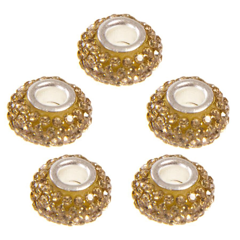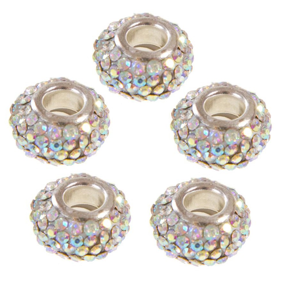 Les perles shamballa permettent la création de jolis bracelets fantaisie. Différent des perles rondes et breloques plus habituelles, ces perles attirent instinctivement l’œil grâce à l’effet de brillance accordé par le strass. Un grand choix de couleurs vous est offert pour trouver le ton que vous souhaitez afficher à votre poignet. En forme de soucoupes, ces perles cristal mesurent 12 ou 14 millimètres et possèdent un diamètre de 5 mm pour passer le cordon de votre création en toute facilité. Craquez pour cet ensemble de 5 perles shamballa !