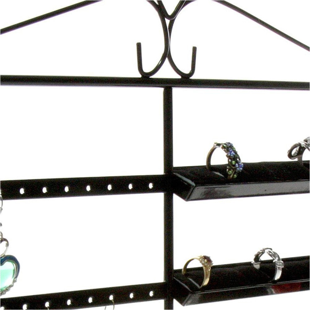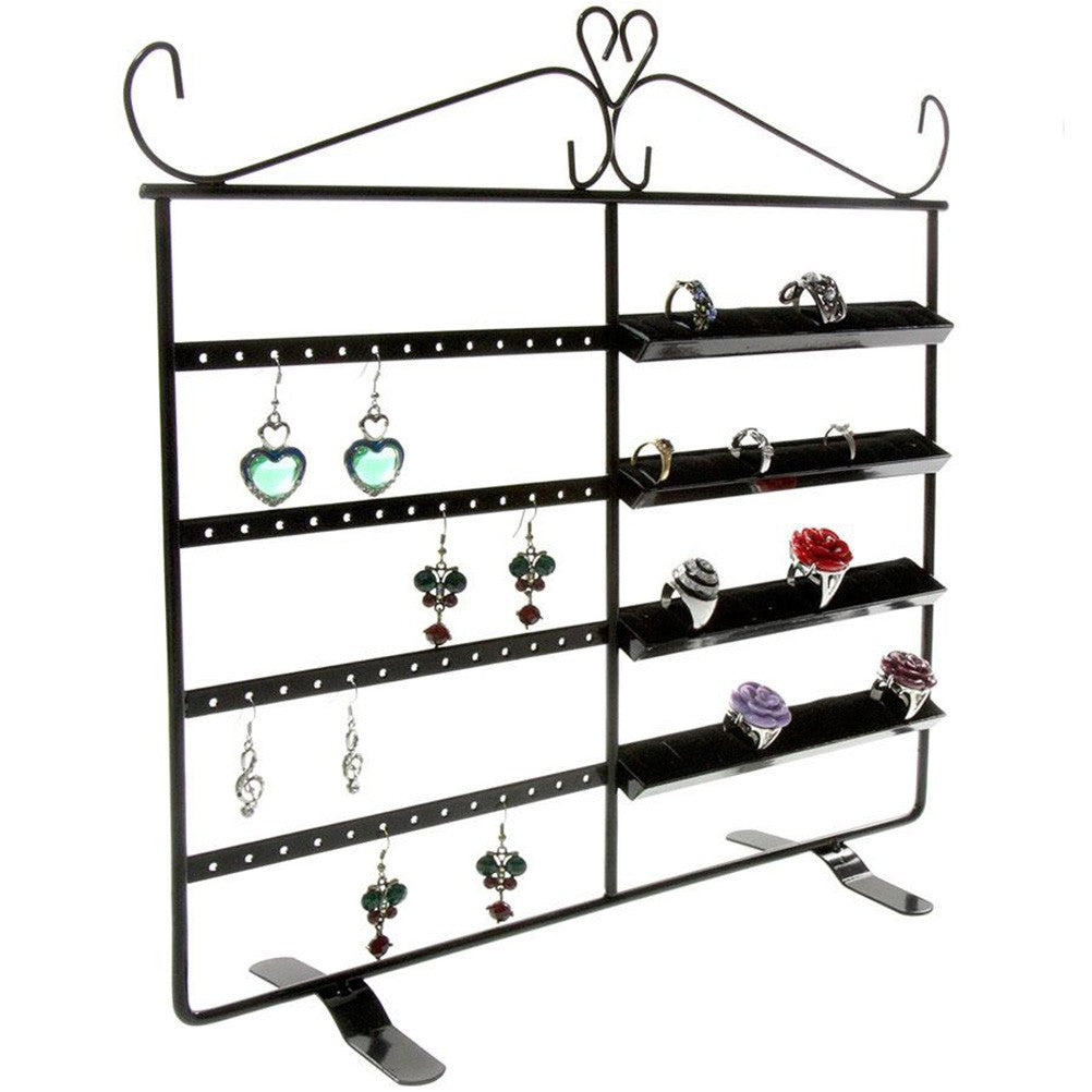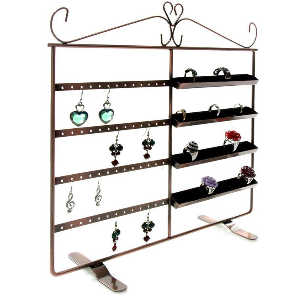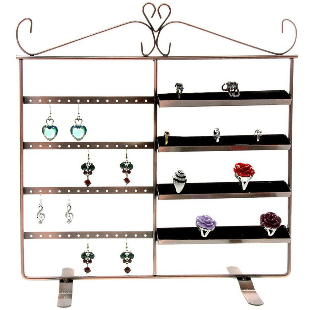 Ce cadre porte bijoux mesure 34 centimètres de hauteur et de longueur. Divisé en deux parties, il vous permet d’afficher ensemble bagues et boucles d’oreilles. Les 4 rangées pour bagues disposent de 10 fentes chacune, et vous pouvez accrocher 26 paires de boucles d’oreilles sur les rangées de trous à côté. L’espacement entre chaque rangée est de 5 cm. Ce presentoir bijoux est disponible en couleur cuivre, gris ou noir. Très utile de par sa grande taille et sa mixité, laissez-vous séduire par ce cadre porte bijoux !