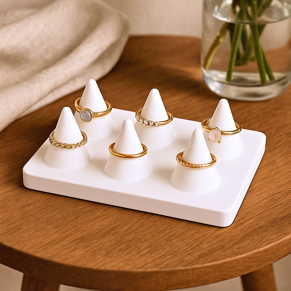 ✨ Présentoir à Bagues – Plateau 6 Cônes en Plâtre Céramique - Déco et raffiné