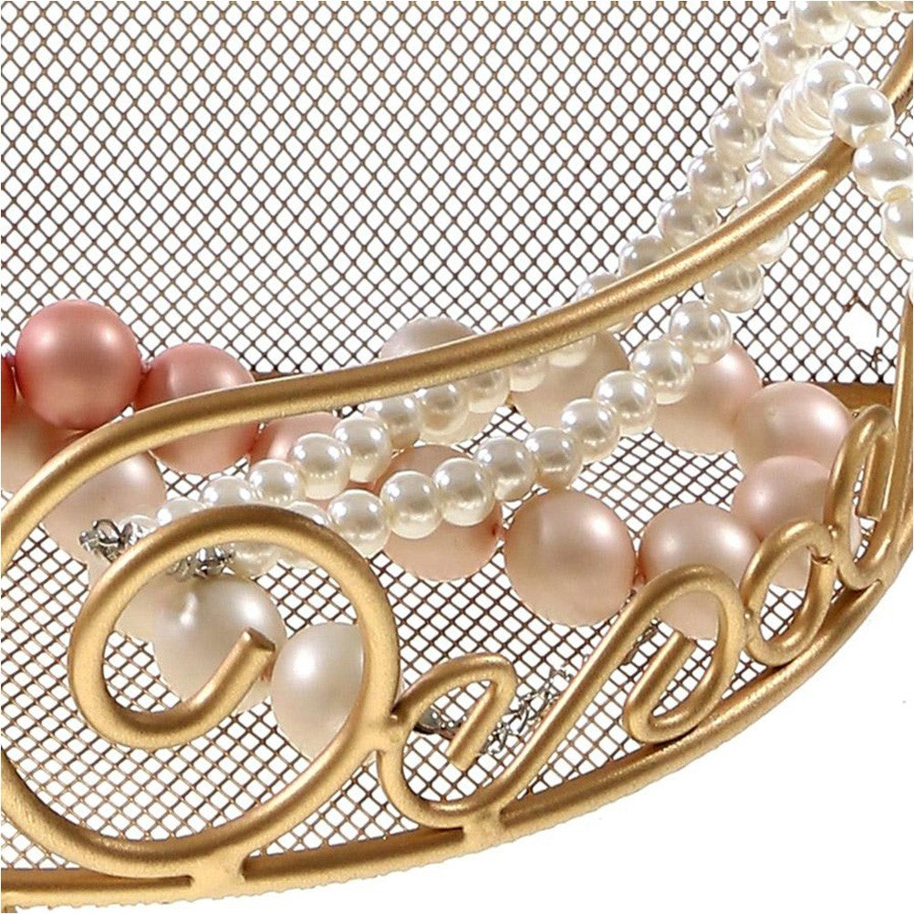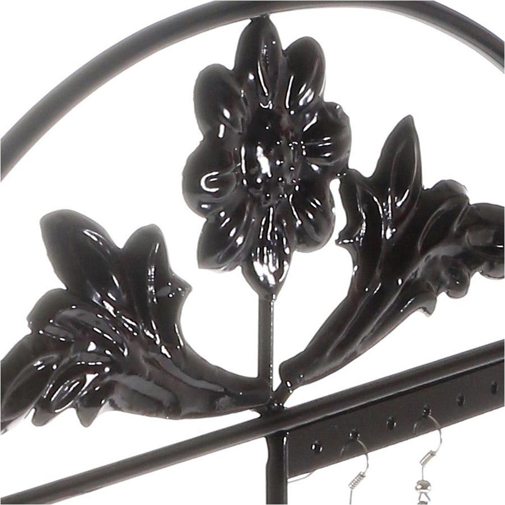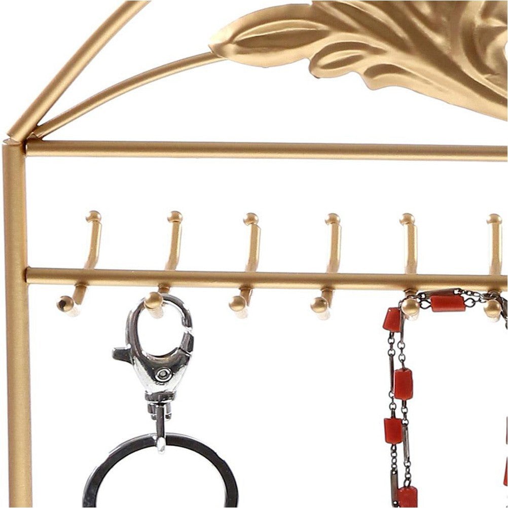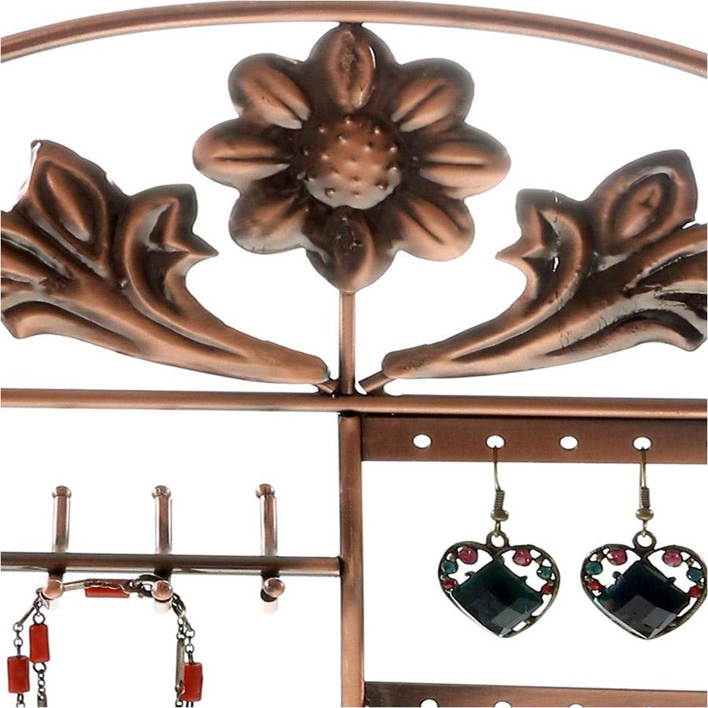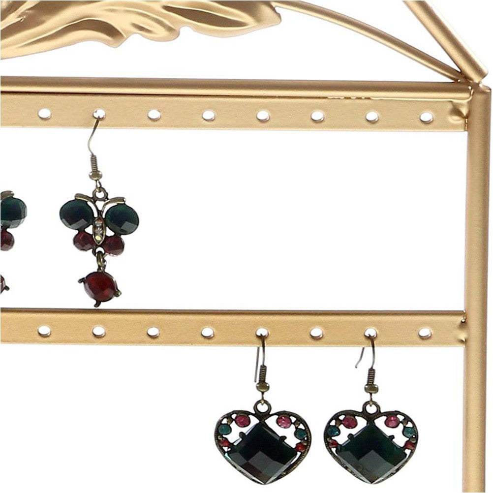 Le porte bijoux comporte trois parties distinctes, afin de présenter de nombreuses parures. 14 crochets sont là pour présenter bracelets et accessoires de type porte clé, et 20 paires de boucles d’oreilles peuvent être suspendues à côté sur les 4 rangées horizontales. Le socle en forme de corbeille vous permet en outre de déposer un collier ou des accessoires bijoux à l’intérieur. Ce presentoir bijoux mesure 40,8 centimètres de hauteur et 26,8 cm de large. Il existe en plusieurs couleurs. Faites votre choix et laissez-vous séduire par le joli design du porte bijoux !