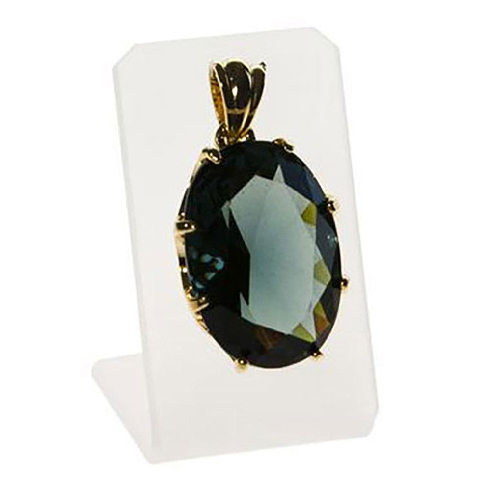 Présentoir translucide en plexiglas avec crochet métal pour pendentif. Largeur : 3 cm Profondeur : 2.5 cm Hauteur : 5 cm