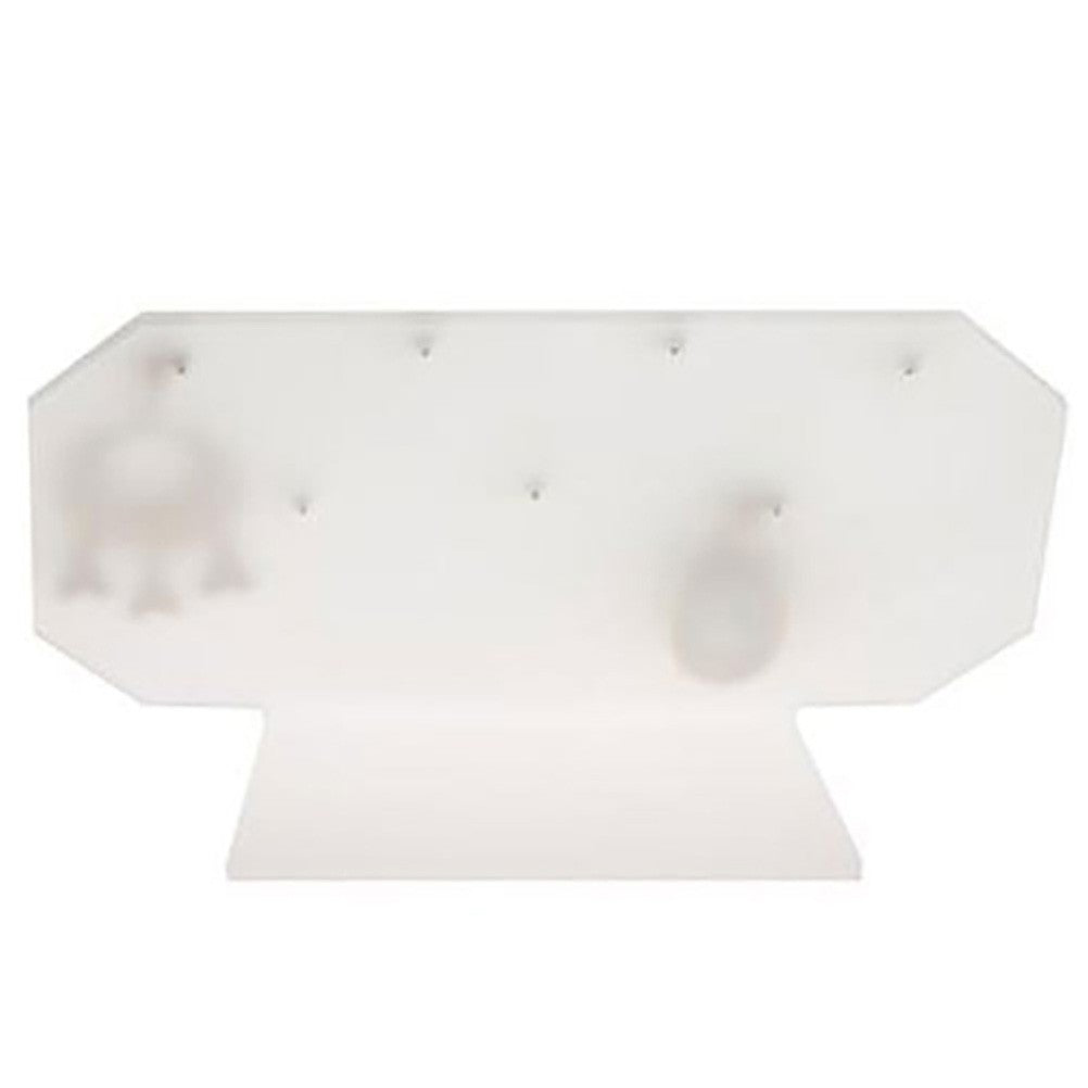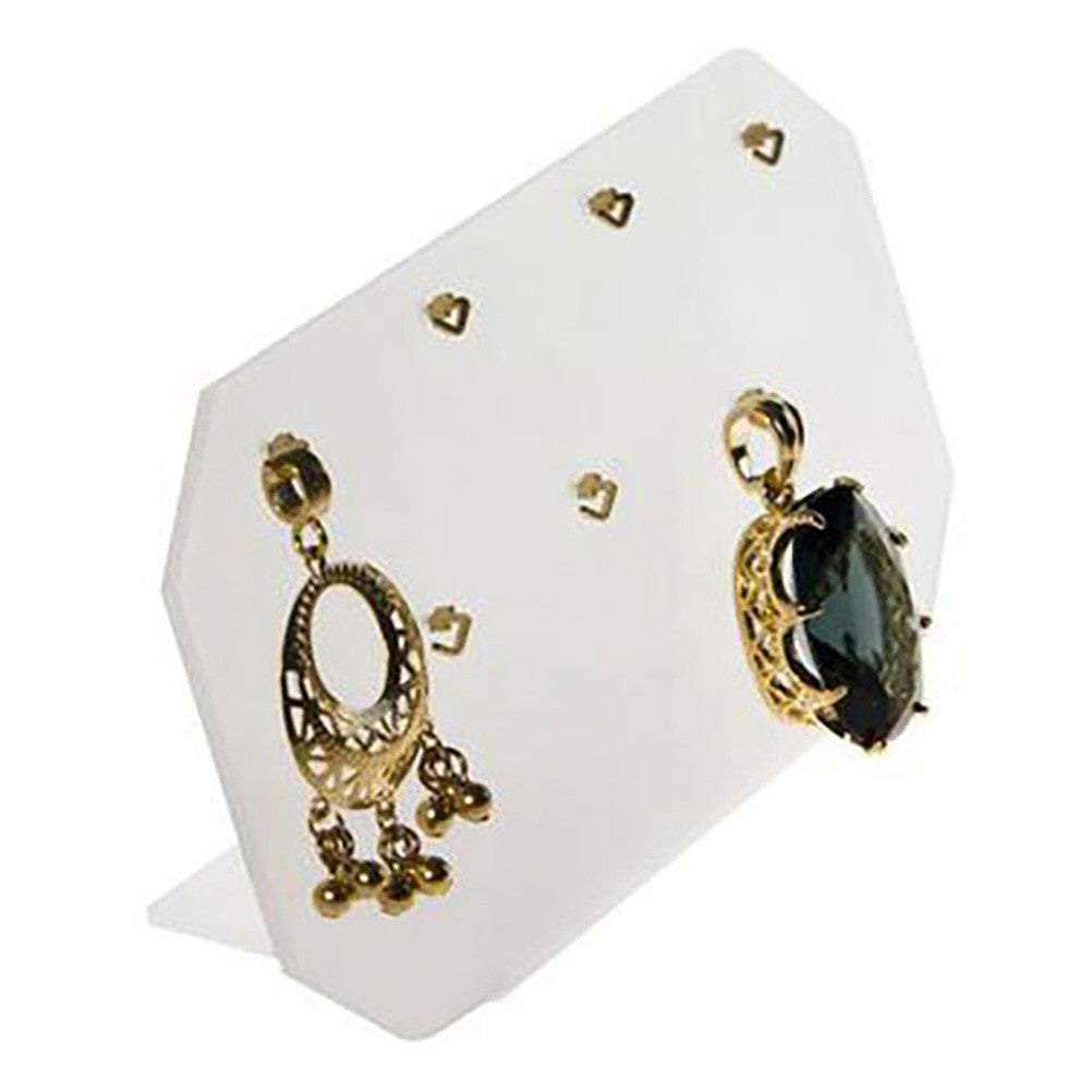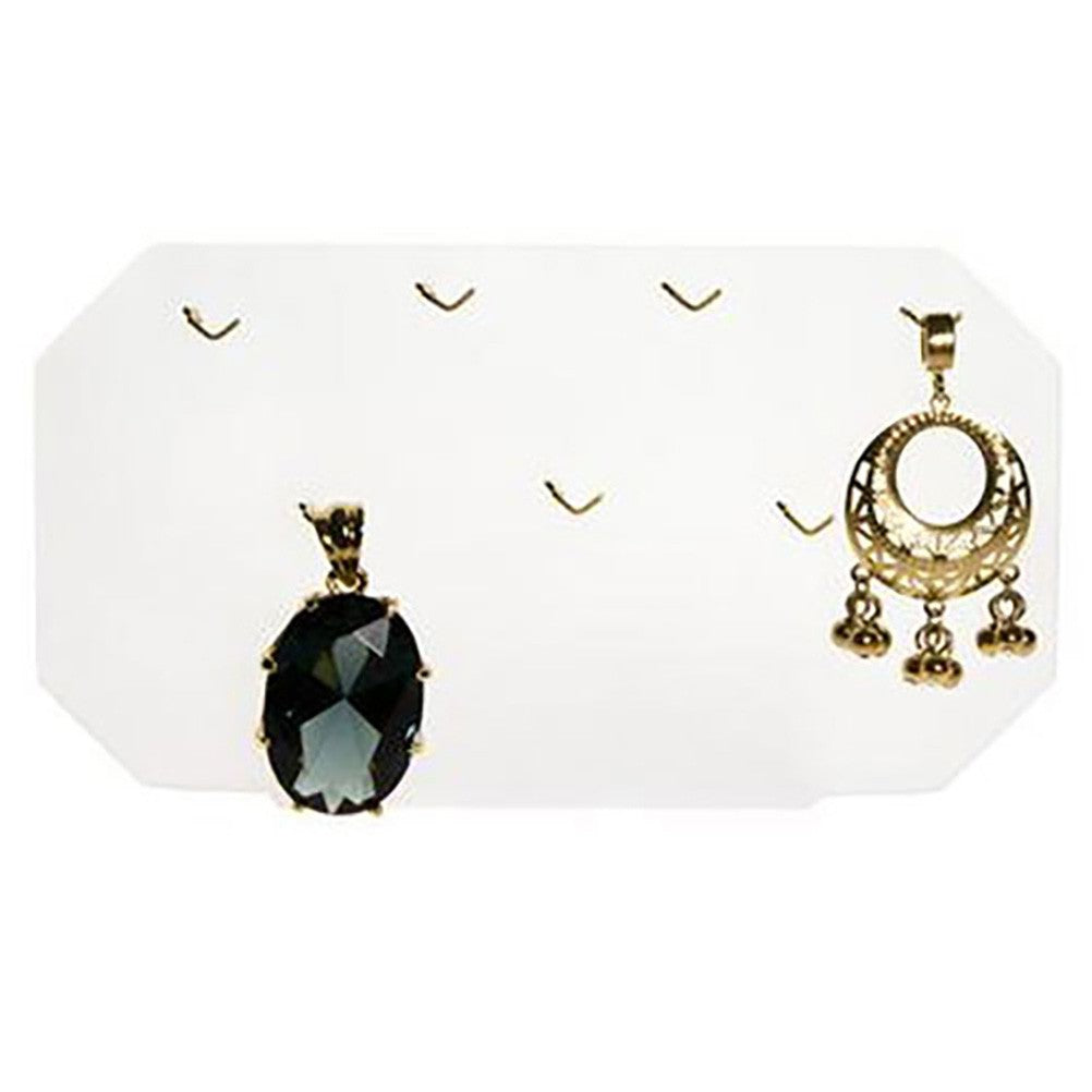 Présentoirs transparents en plexiglas avec 7 crochets en métal doré pour pendentifs. Largeur : 13 cm Profondeur : 4 cm Hauteur : 7 cm
