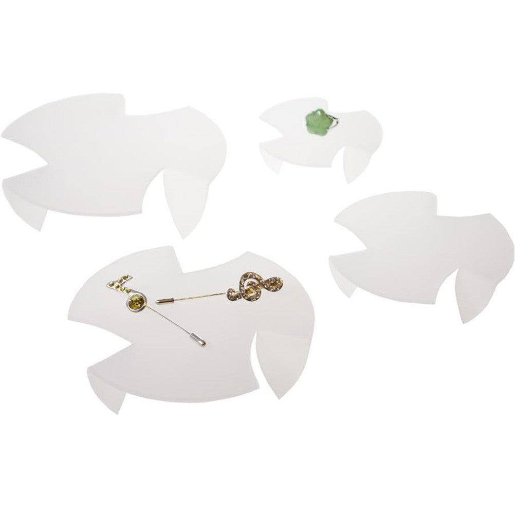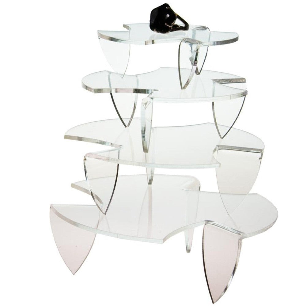 Ce support bijoux se présente sous la forme d’une jolie mini table à trois pieds. Le design travaillé fait penser à un trèfle à 3 pétales. Vous pouvez y déposer des bagues, broches et même de petits bracelets. Vous avez le choix entre une couleur translucide ou transparent, pour mettre en avant vos plus belles pièces de la meilleure des manières. Livré par lots de 4 pièces de tailles différentes, ce presentoir bijoux permet de créer des expositions originales et variées. Amateurs de fantaisie, craquez pour ce support bijoux !